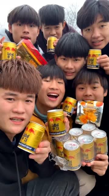 视频中的男孩,身穿休闲装,笑容满面。他拿起一瓶红牛,一边喝,一边拿起一颗瓜,准备大快朵颐。这个场景,瞬间吸引了无数网友的围观。